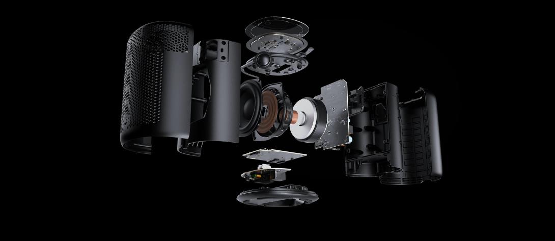 Hochauflösender, raumfüllender Klang: 4-Zoll-Tieftöner + zwei 1-Zoll-Hochtöner, maximale Leistung von 100 W und unterbrechungsfreie 24-Bit/192-kHz-Wiedergabe.